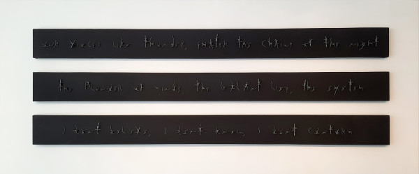 Home / Abdul Musavir Mir / Abdul Musavir Mir | Discreet Abdul Musavir Mir | Discreet Abdul Musavir Mir Discreet Barbed wire on wooden panels 8 feet x 8 inches (each) 2023 POR Categories: Abdul Musavir Mir, Delightfully Absurd Product ID: 10072 Related Products Previous - Next