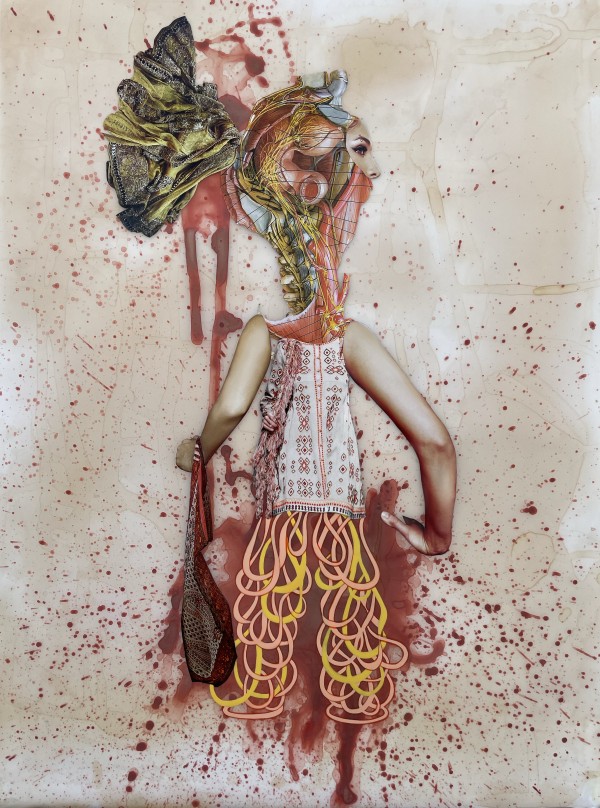 Medically Illustrated Paper, Acrylic Paint, Collage and Tea Wash on Mylar